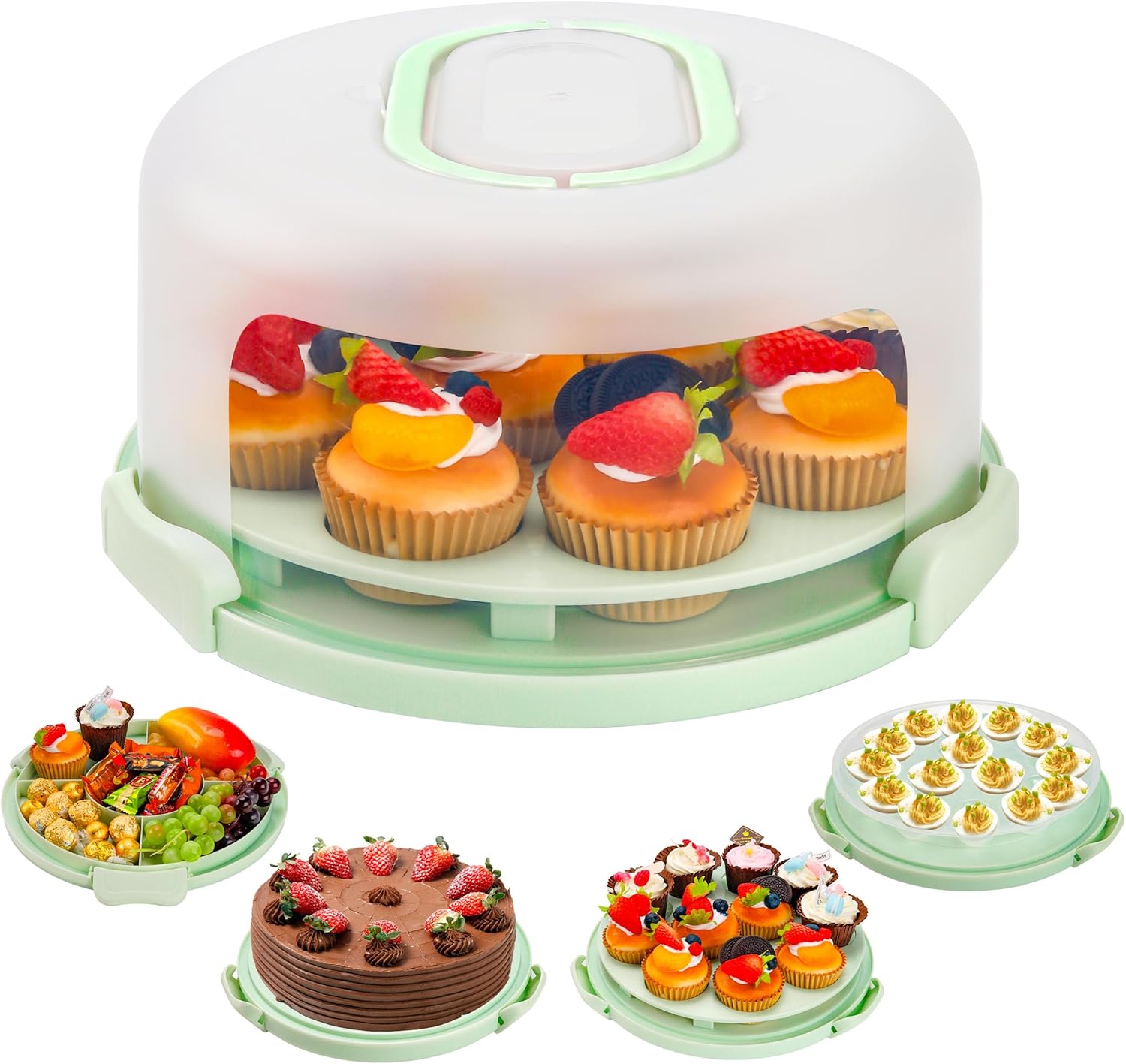 The clear dome lid provides full visibility of the contents while protecting against dust and moisture. The top is fitted with a wide and ergonomic handle, making it easy to carry to parties, bake sales, picnics, or events. Secure side latches lock the base and lid together, keeping everything in place during transport. All parts are dishwasher-safe for hassle-free cleaning.